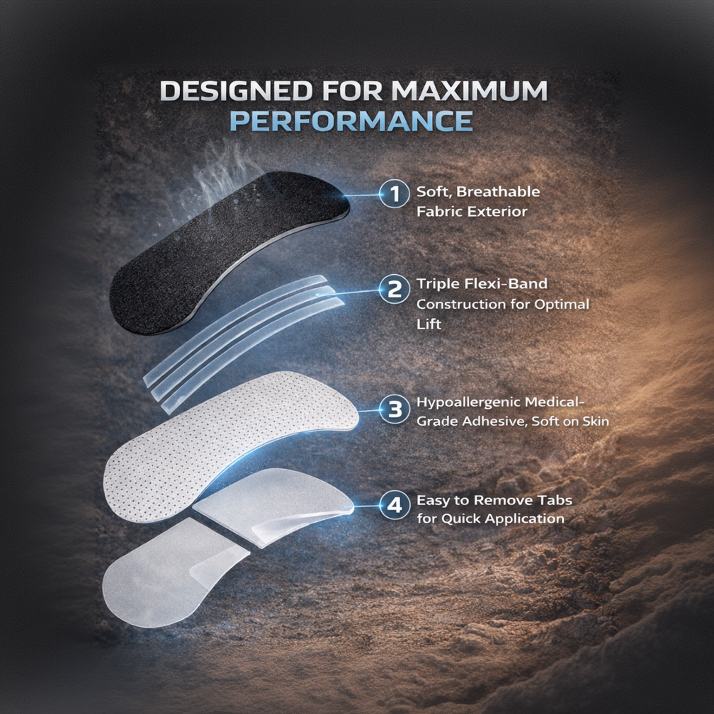 The reinforced flex structure ensures optimal lift, while the medical-grade adhesive provides strong hold without irritation.